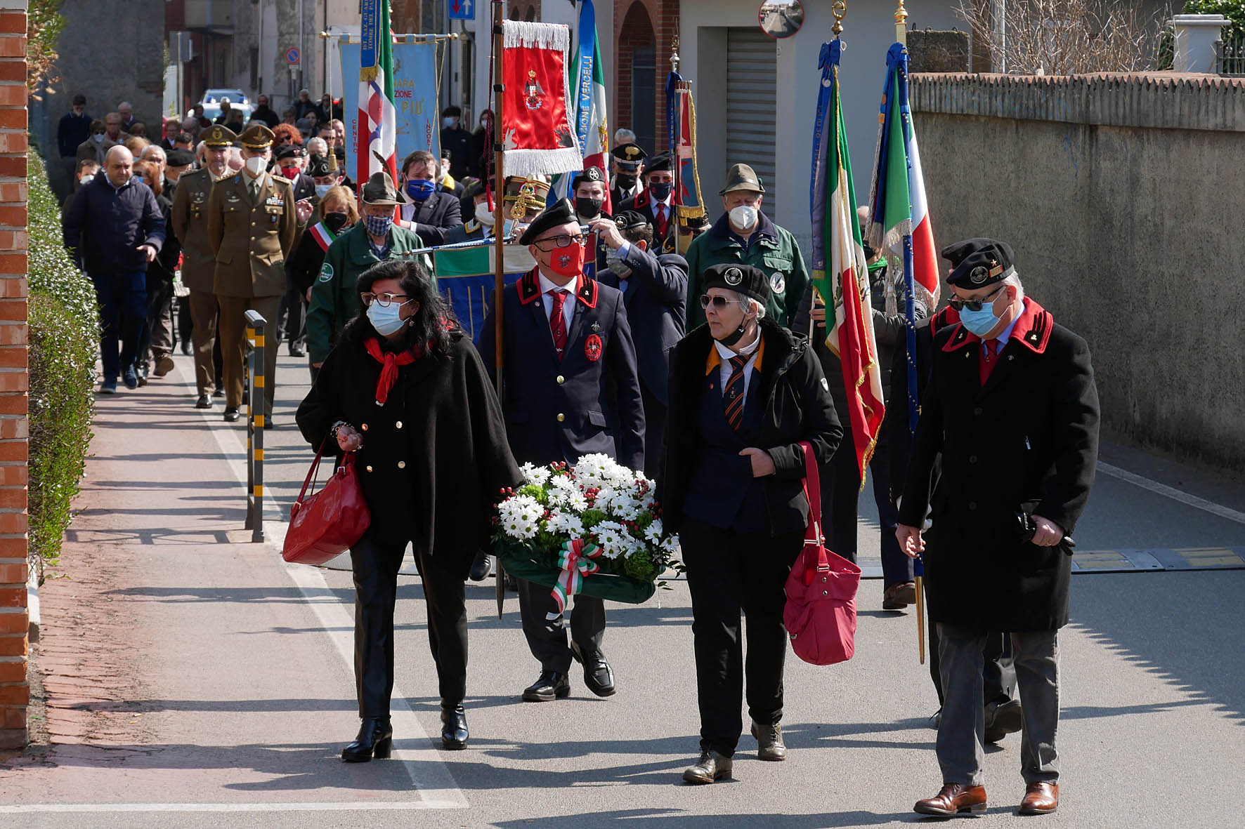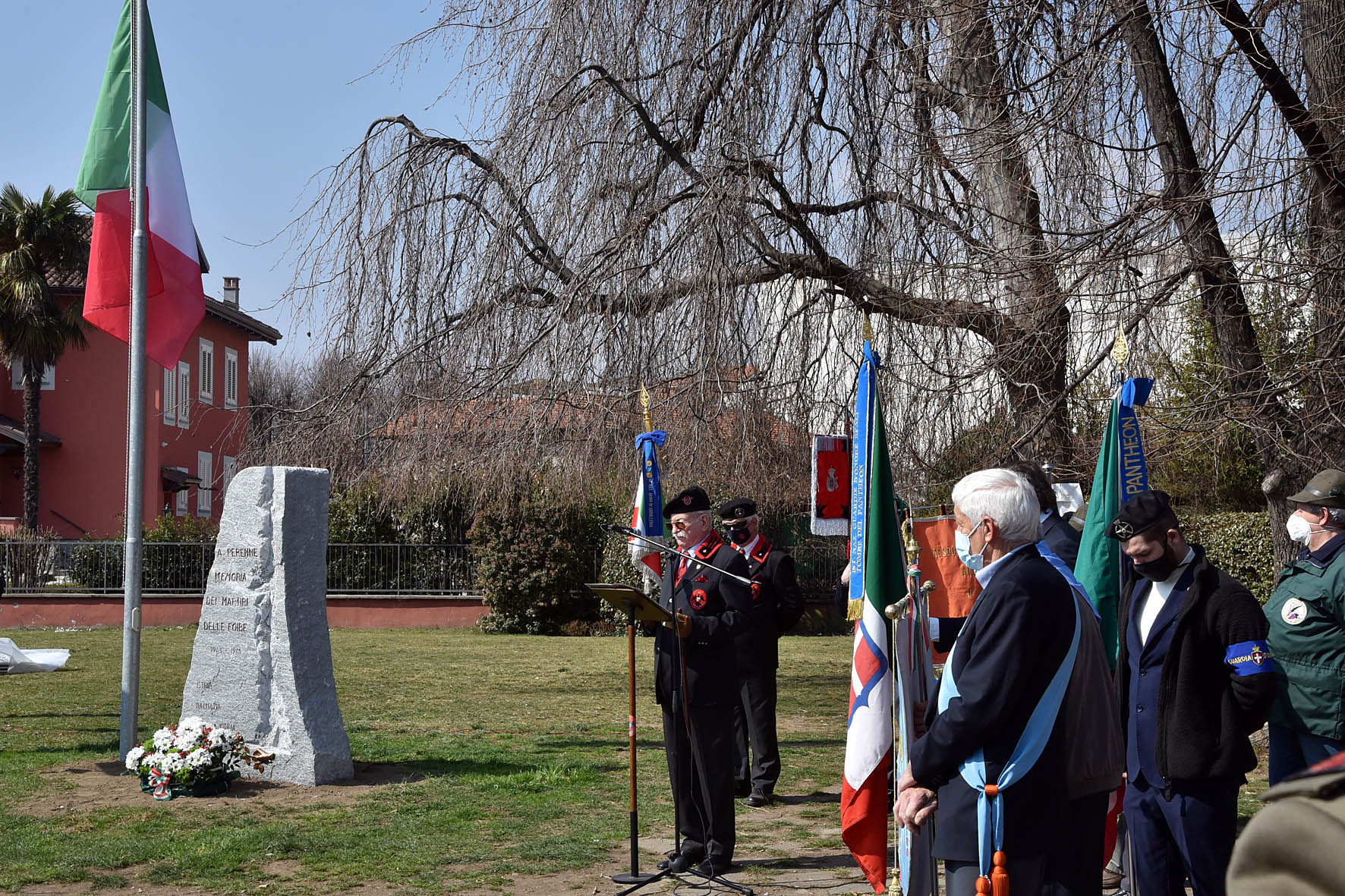 La cerimonia è stata particolarmente toccante, soprattutto quando il generale Umberto De Luca ha ricordato il suo esodo da Pola a soli otto anni sulle note del “Va pensiero” di Verdi. E’ stata preceduta dalla messa officiata dal parroco, monsignor Franco Givone nella chiesa parrocchiale; da qui il corteo ha raggiunto la piazza dedicata, nel 2008, ai Martiri delle foibe. Dopo l’alzabandiera è seguito lo scoprimento del monumento e la sua benedizione, seguita dalla preghiera ai Martiri delle foibe, composta nel 1955 da monsignor Antonio Santin, arcivescovo di Trieste e Capodistria. Hanno poi preso la parola il sindaco e il generale De Luca, che ha tracciato un quadro storico del confine orientale italiano, esponendo poi gli eventi e le modalità con cui è stata effettuata una vera e propria pulizia etnica della popolazione italiana.