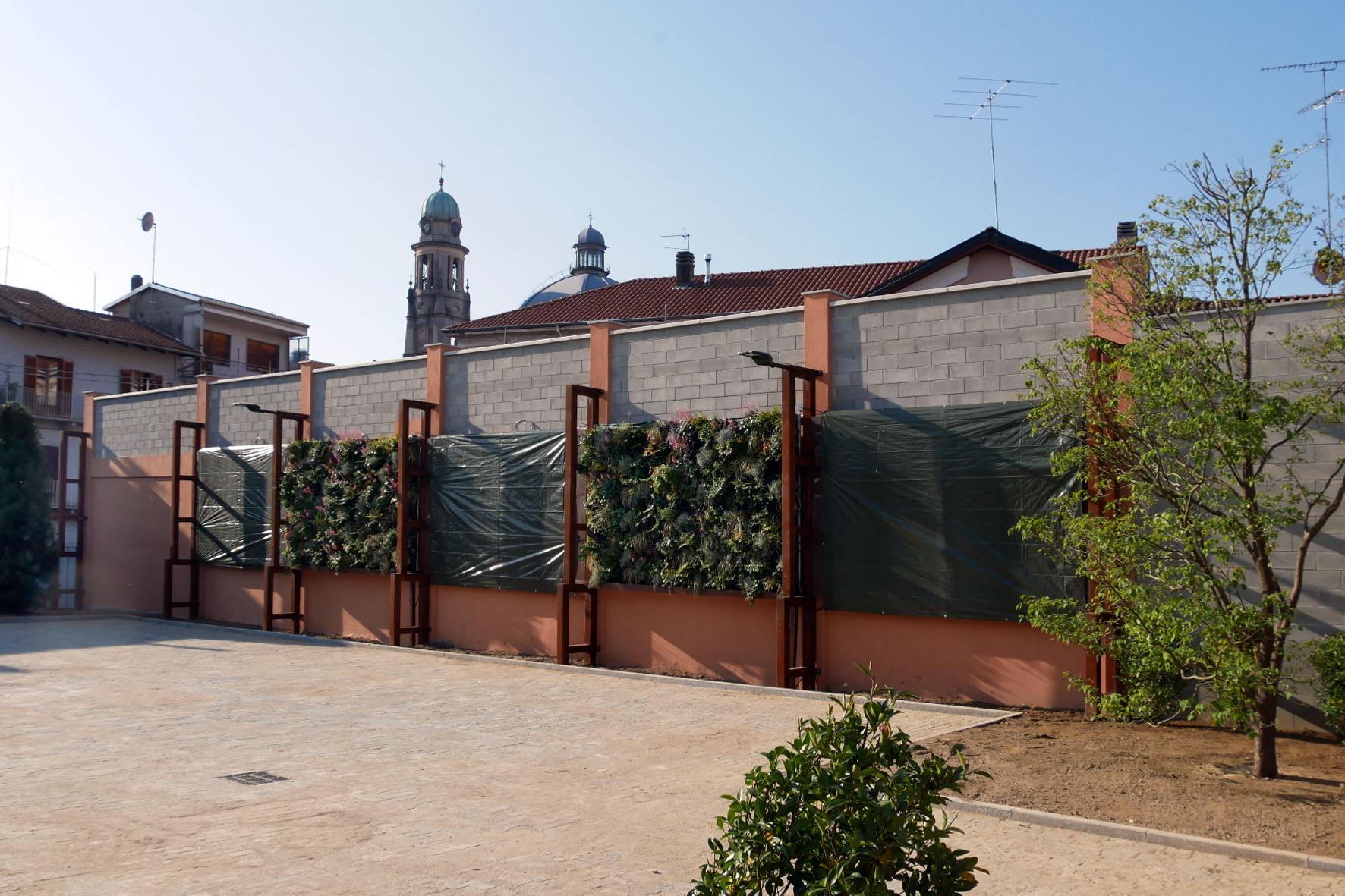 Nei giorni scorsi una ditta specializzata ha realizzato la “parete verde”, creando una sorta di aiuola verticale, con piante disposte sulla superficie del muro che divide la piazza da un edificio privato. Sono pronte anche le altre aiuole. L’arredo urbano, e in particolare l’aiuola verticale sorretta da una struttura in ferro, richiama molto quello dei portici di piazza Italia, mentre la pavimentazione è molto simile a quella di corso Valsesia. Al momento la piazza ospita una quindicina di parcheggi, ma l’idea è quella di utilizzarla anche per piccoli eventi (le dimensioni sono contenute) nel cuore del centro storico.