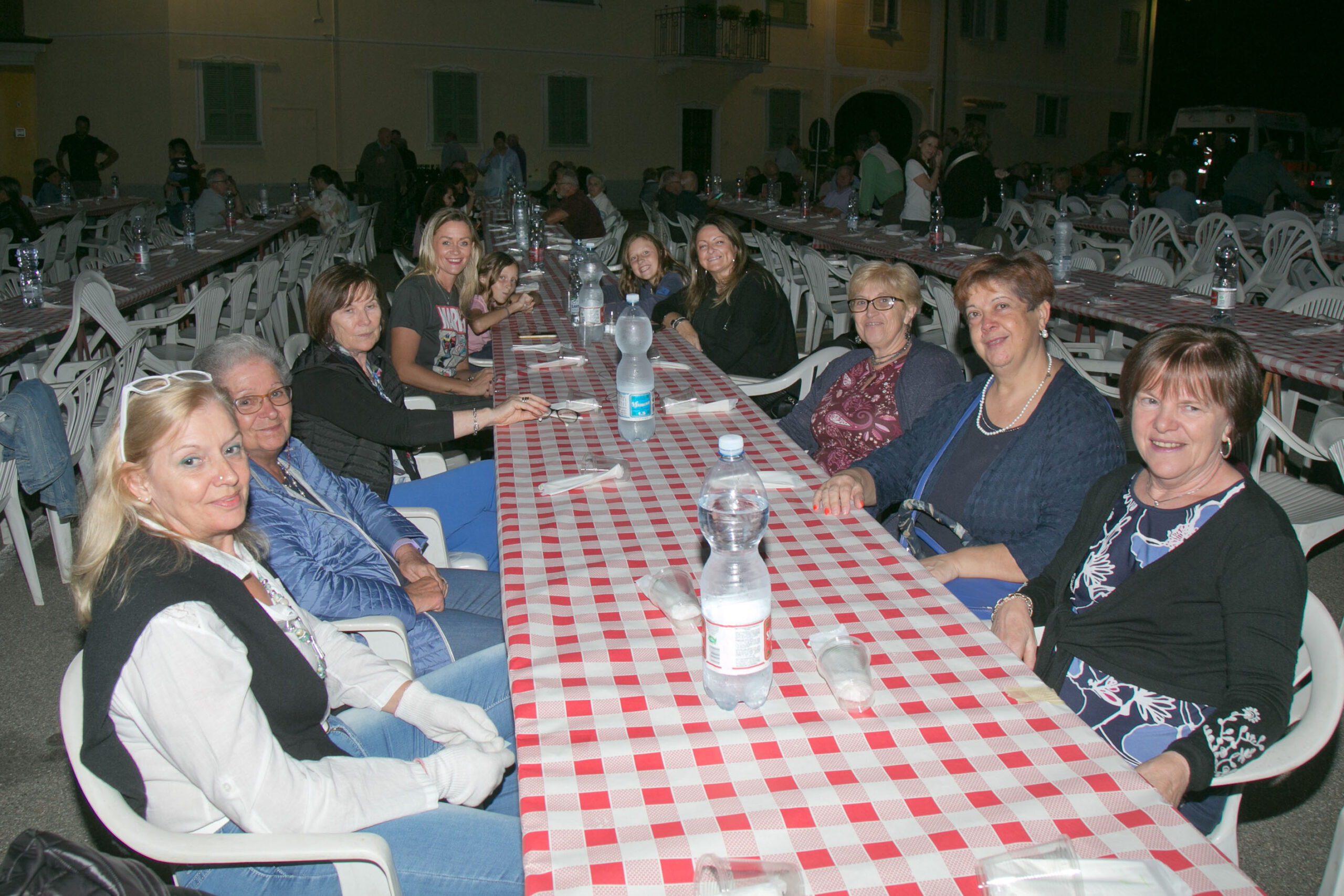 Alcuni momenti della cena della Pro loco in piazza Prone a Sizzano “Salam, strachin e vin dal cuntadin” (fotoservizio Sandro Mori)