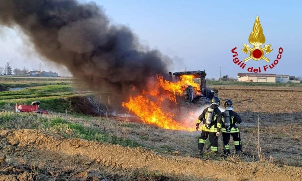 L’allarme è scattato poco dopo le 17, quando una squadra dei vigili del fuoco del comando provinciale di Vercelli è stata inviata sul posto per domare le fiamme che avevano già completamente avvolto un trattore.