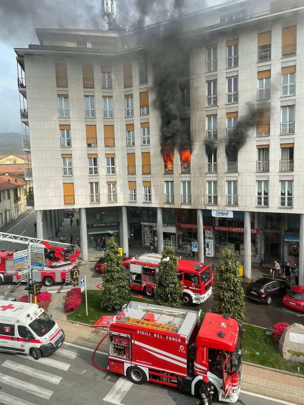 Sul posto sono intervenute diverse squadre dei vigili del fuoco, impegnate nelle operazioni di spegnimento e messa in sicurezza dell’edificio. Presenti anche i sanitari del 118, i carabinieri, la polizia locale, volontari della Protezione civile e personale della questura.