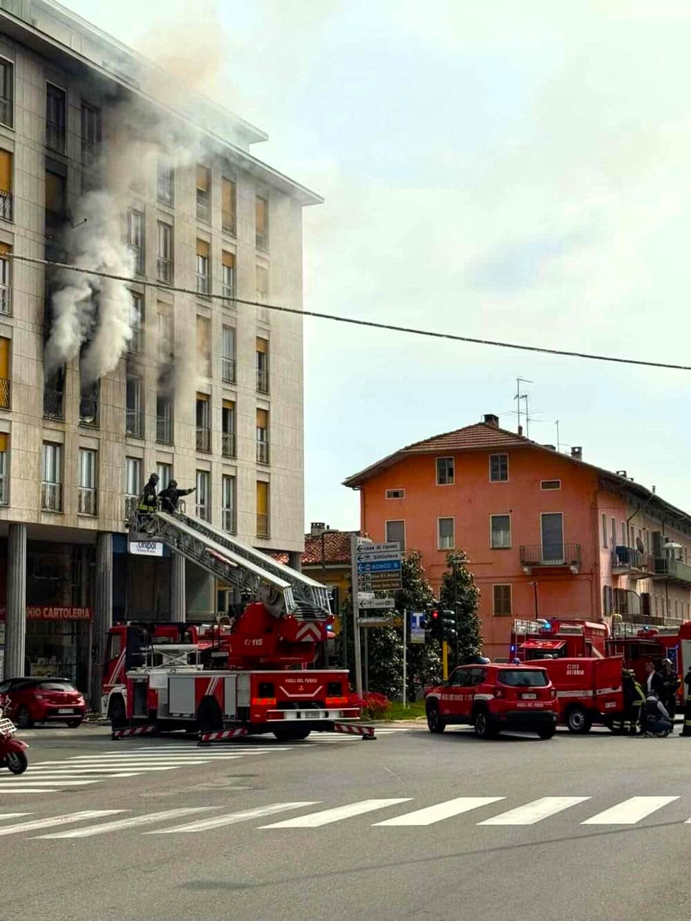 Palazzo in fiamme nel Biellese: residenti evacuati, persone intossicate dal fumo. Vigili del fuoco al lavoro, chiusa la strada.
