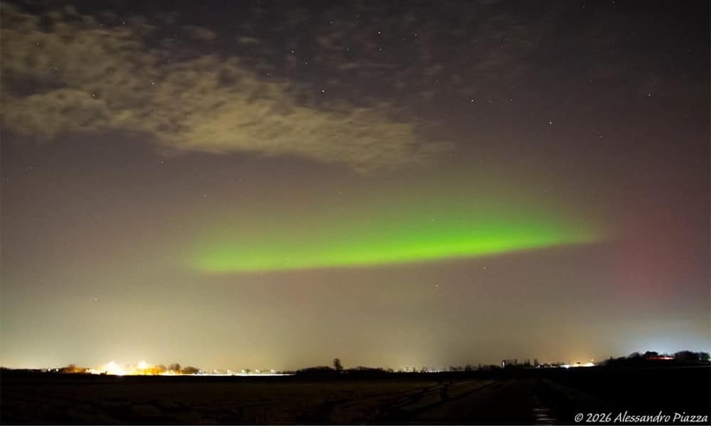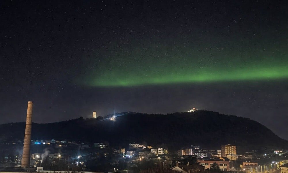 «Anche dal Piemonte è stato possibile vedere il picco di aurora che si è verificato intorno alle 22.30, specialmente tra Novarese e Vercellese interessati dalle maggiori schiarite. Guardate questo scatto da Gattinara che ritrae molto bene il verde dell’aurora, estremamente raro a queste latitudini» spiegano gli esperti del Centro meteo.