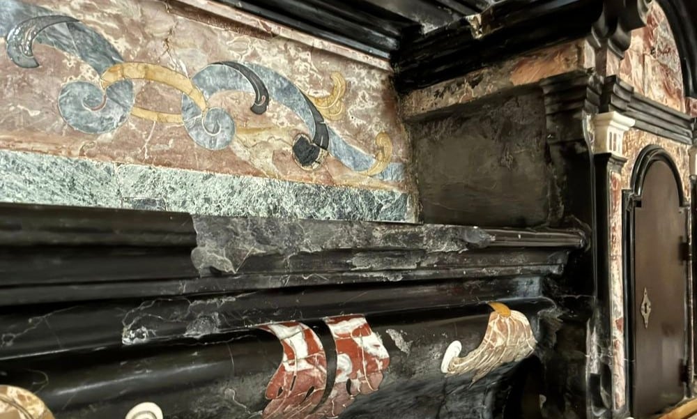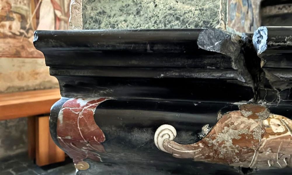 Da come si vede nelle foto, in alcuni tratti il marmo dell’altare della chiesa è stato frantumato con un martello o uno scalpello. Un gesto gratuito e inspiegabile, che ha provocato reazioni indignate in zona.