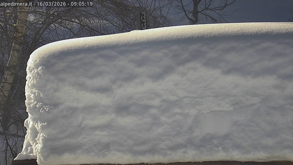 Per avere un’idea della quantità di neve che è caduta nel fine settimana, basta dare un’occhiata al nivometro di Mera, che nella mattinata di oggi, lunedì 16 marzo, segnava 180 centimetri tra neve fresca e manto precedente.